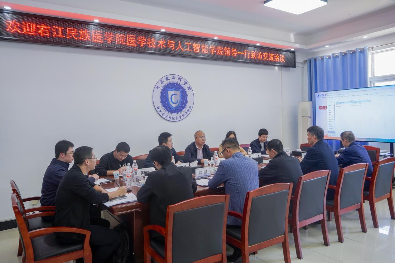 陈文成书记、庞雅琴院长对桂林电子科技大学北海校区的热情接待表示感谢,并简要介绍了医学技术与人工智能学院的发展概况、学科特色以及大数据管理与应用专业的建设现状、人才培养目标。双方就大数据管理与应用专业的课程设置优化、实践教学资源整合、师资队伍建设路径、协同育人机制以及学生实习就业指导等关键问题展开了深入研讨和交流,相互分享了各自的经验和思路,针对专业建设中遇到的共性问题提出了建设性的意见和建议。