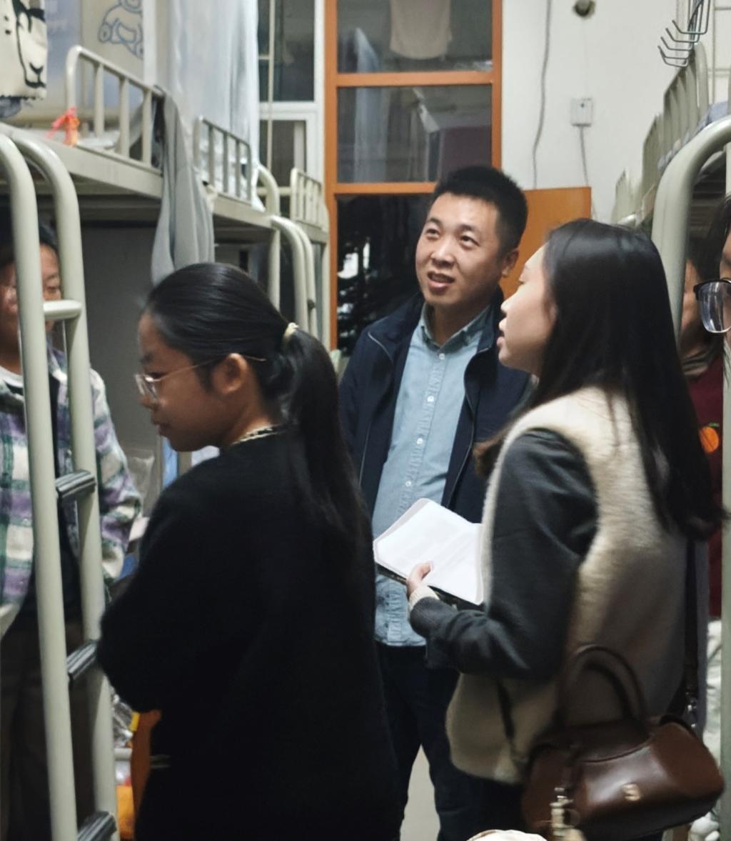 2025年11月26日下午,医学技术与人工智能学院党委书记陈文成、院长庞雅琴、党委副书记梁楚晗、副院长宗子傲带队,与学生科全体辅导员一同深入学生宿舍,开展走访慰问活动。